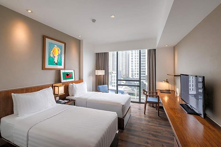 Offering free toiletries, this twin room includes a private bathroom with a shower, a hairdryer and slippers. The air-conditioned twin room offers a flat-screen TV with cable channels, soundproof walls, a mini-bar, a tea and coffee maker as well as city views. The unit has 2 beds. high speed wireless internet access is now available.